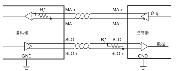 *MA和SLO線均為5 V RS422兼容差分雙絞線。MA傳輸線的端接電阻集成在讀數頭內部。