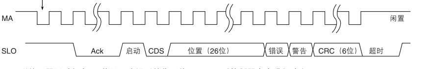 磁編碼器通過設定MA上DI二個上升沿的SLO低電平進行響應。